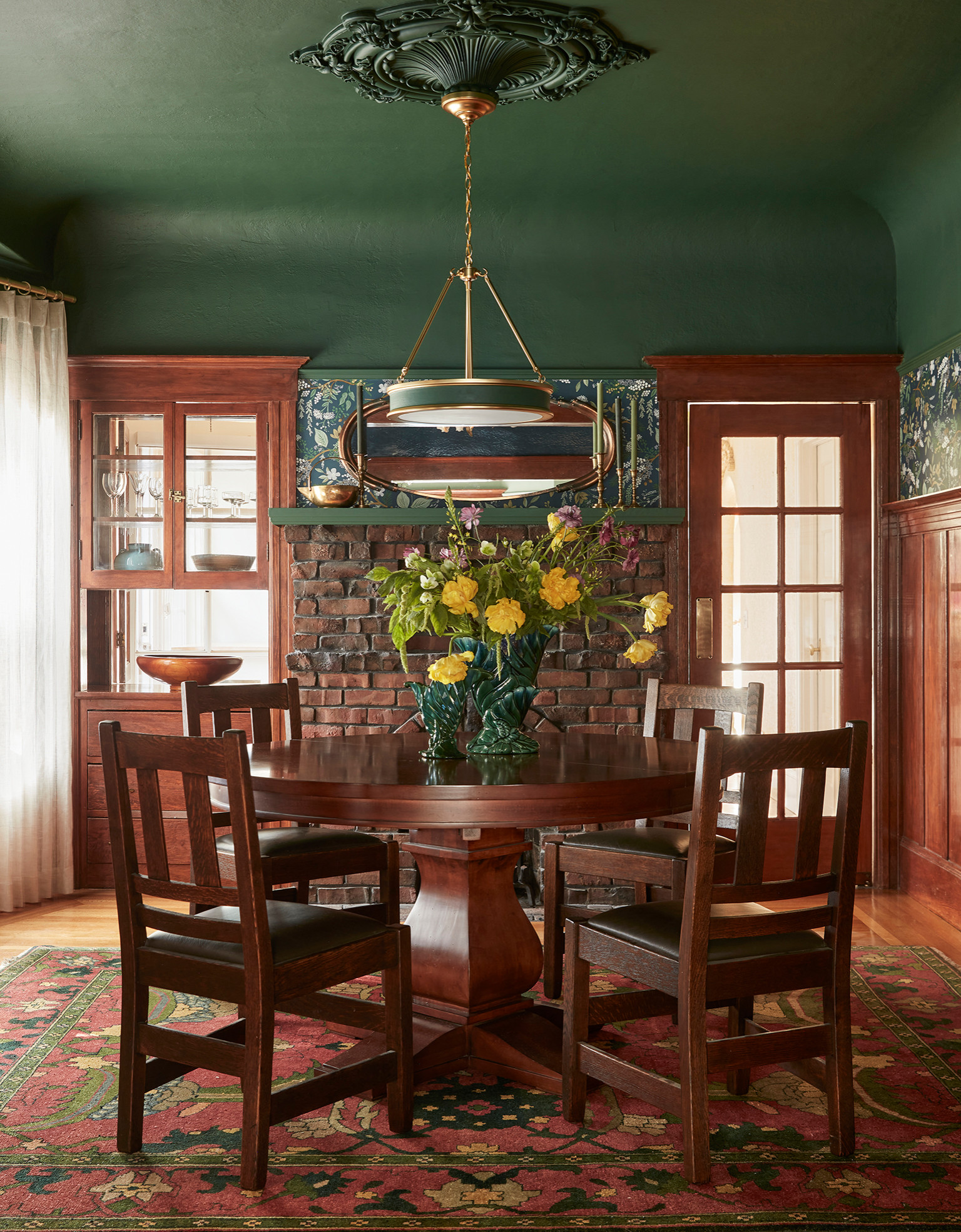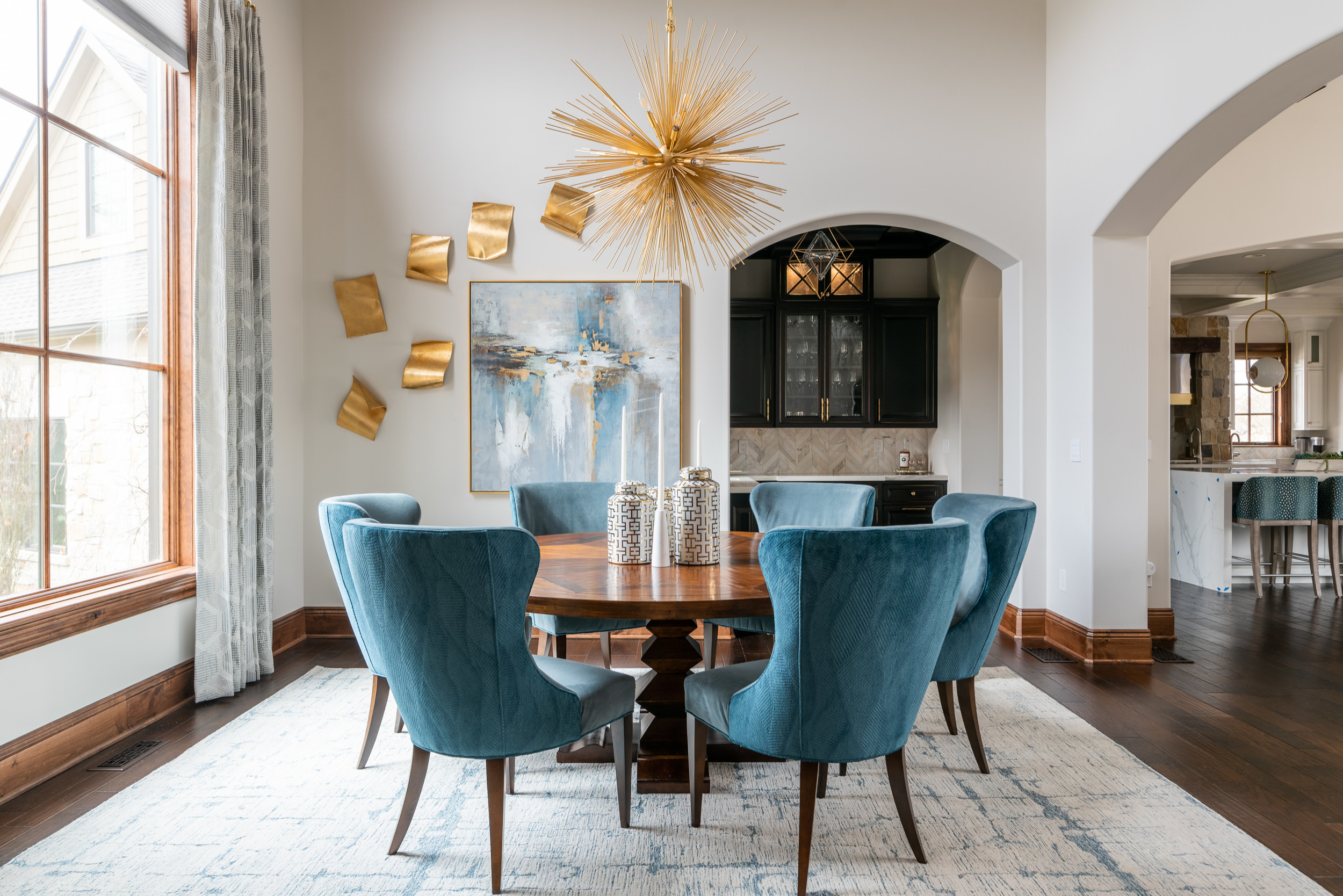 If the rug is one of your first purchases for the dining room, you or your designer can use it to set the tone for the space and develop a color scheme. Pull the lightest or background color from the rug to use as a wall color, and bring in a bolder hue from the rug as an accent in the room, on chair cushions or in artwork.