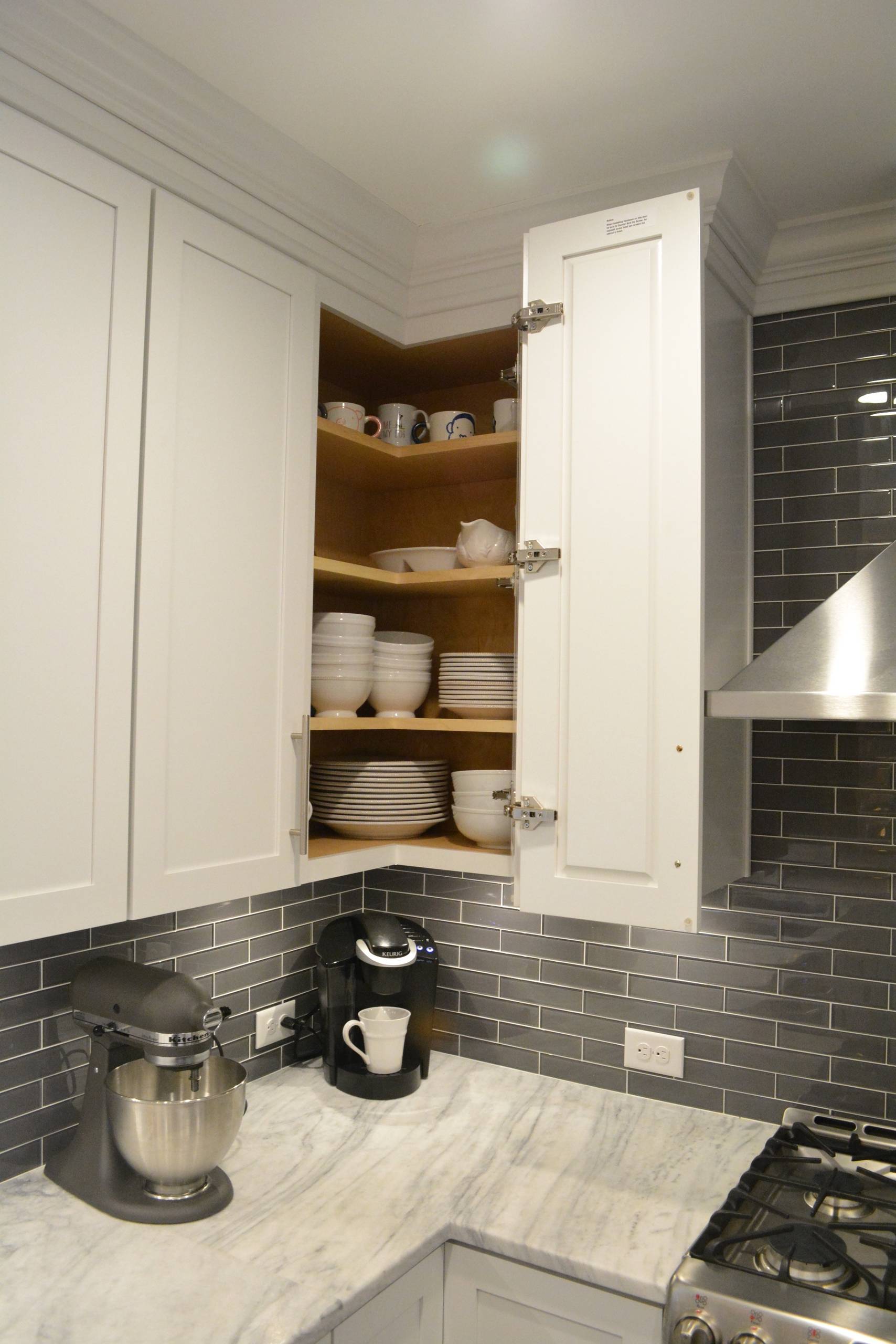 Don’t limit accessible corners to your lower cabinets. This easy-to-reach upper cabinet opens like an accordion and doesn’t waste any storage space.