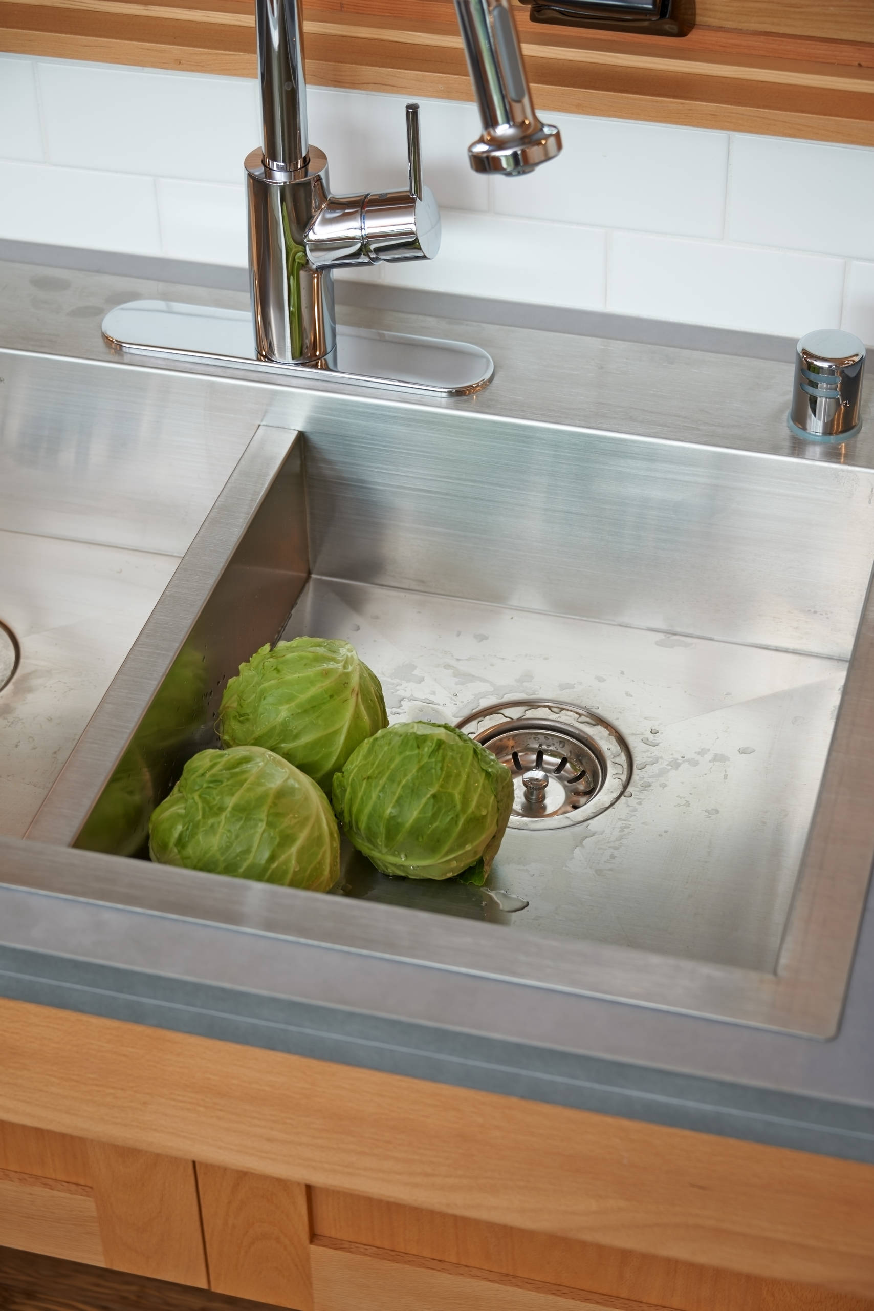 While we’re on the subject of sinks, buy one that isn’t too deep (preferably only 6 to 8 inches). It’s much easier to rinse vegetables and dishes in a shallow sink bowl.