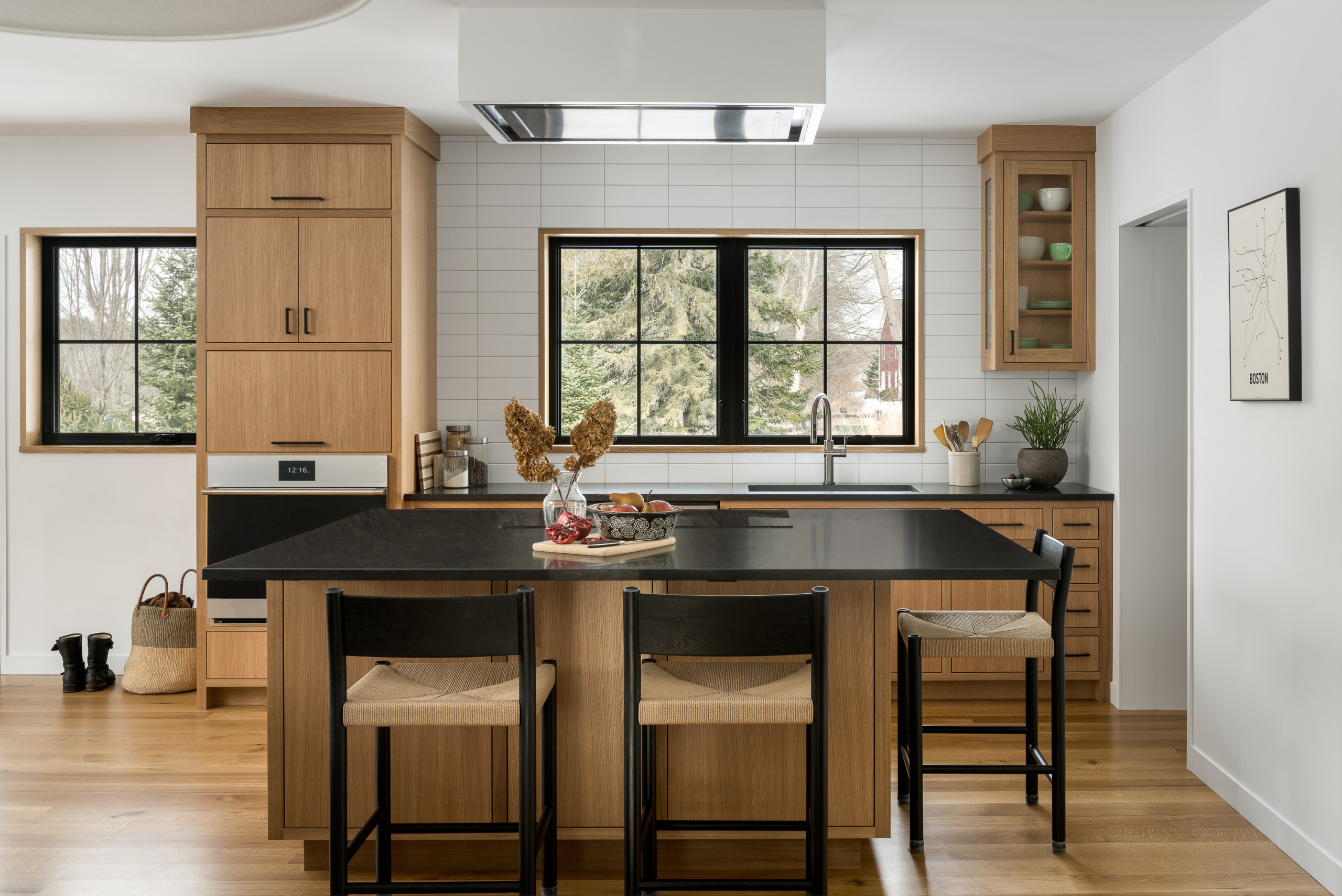 Avoid 90-degree angles on countertops and open shelves. The last thing you want is to hit your hip or elbow on a sharp corner as you’re maneuvering in your kitchen. Round edges lessen the likelihood of bumps and bruises.