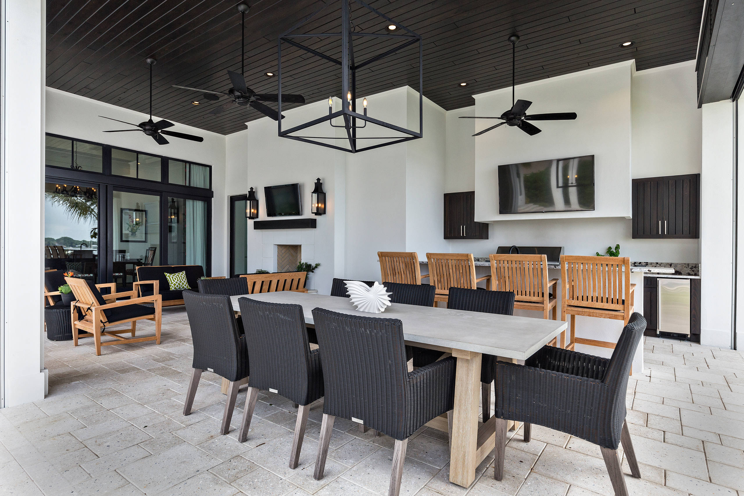WINN Design+BuildFew things enhance home entertaining quite like an outdoor setup with areas for lounging, dining, cooking and TV watching. You’ll find all those elements in this upscale Vienna, Virginia, porch by WINN Design + Build.
