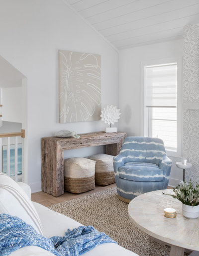 To ensure the nostalgic destination stays in the family, she recently designed a relaxing new beach house retreat for everyone to use, including her parents. She embraced local coastal colors like sandy beiges, watery blues and creamy whites to give the vacation home a soothing ambiance. She then turned to durable materials such as porcelain and glass that can hold up to beach life. A cohesive color palette, layers of organic textures and timeless details create a welcoming getaway for generations to come.