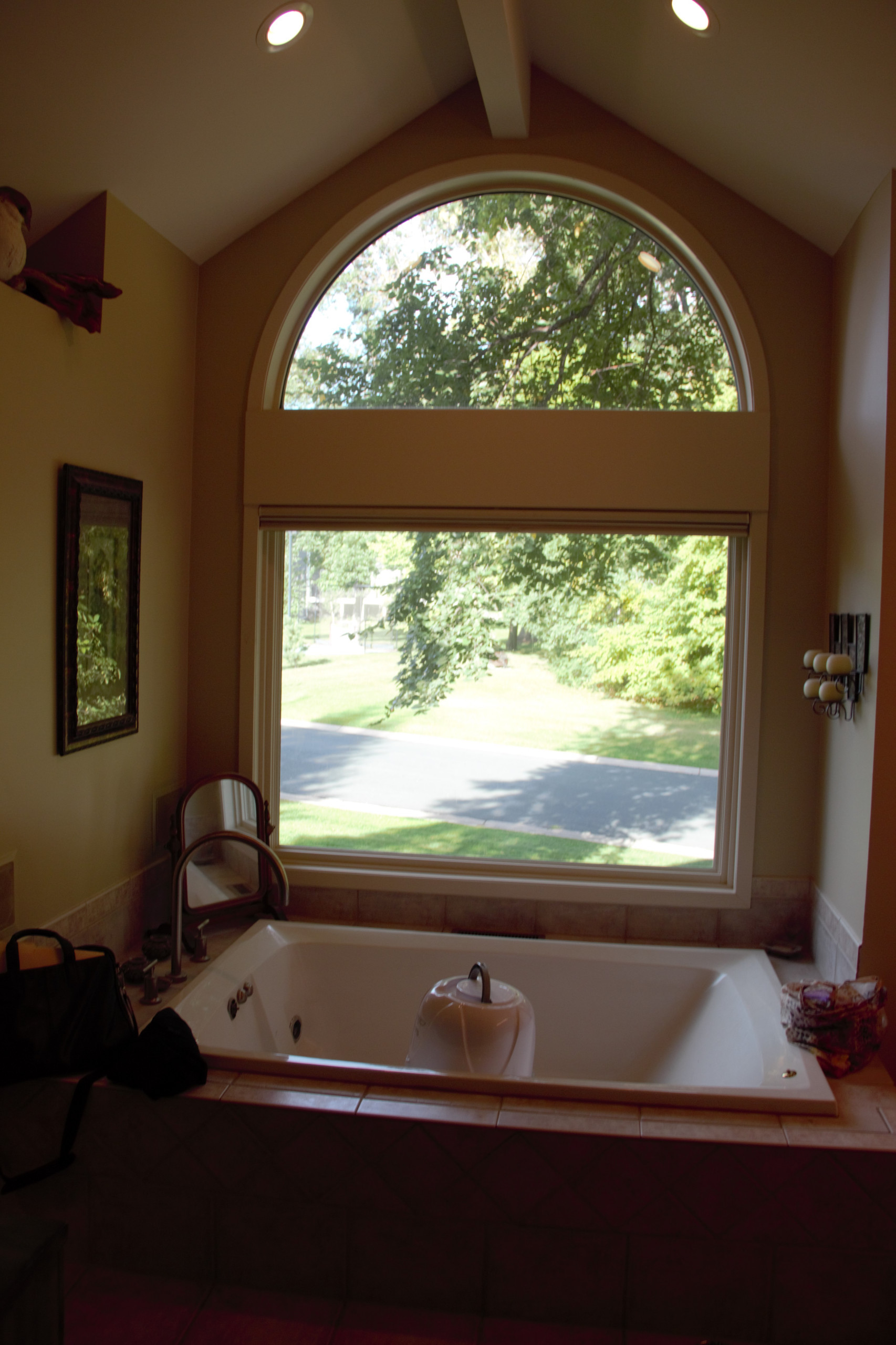 Before: The underused jetted tub with tiled deck sat under windows that awkwardly overlooked a street. “That was some of the reason they were willing to give up that big window,” Lundin says.